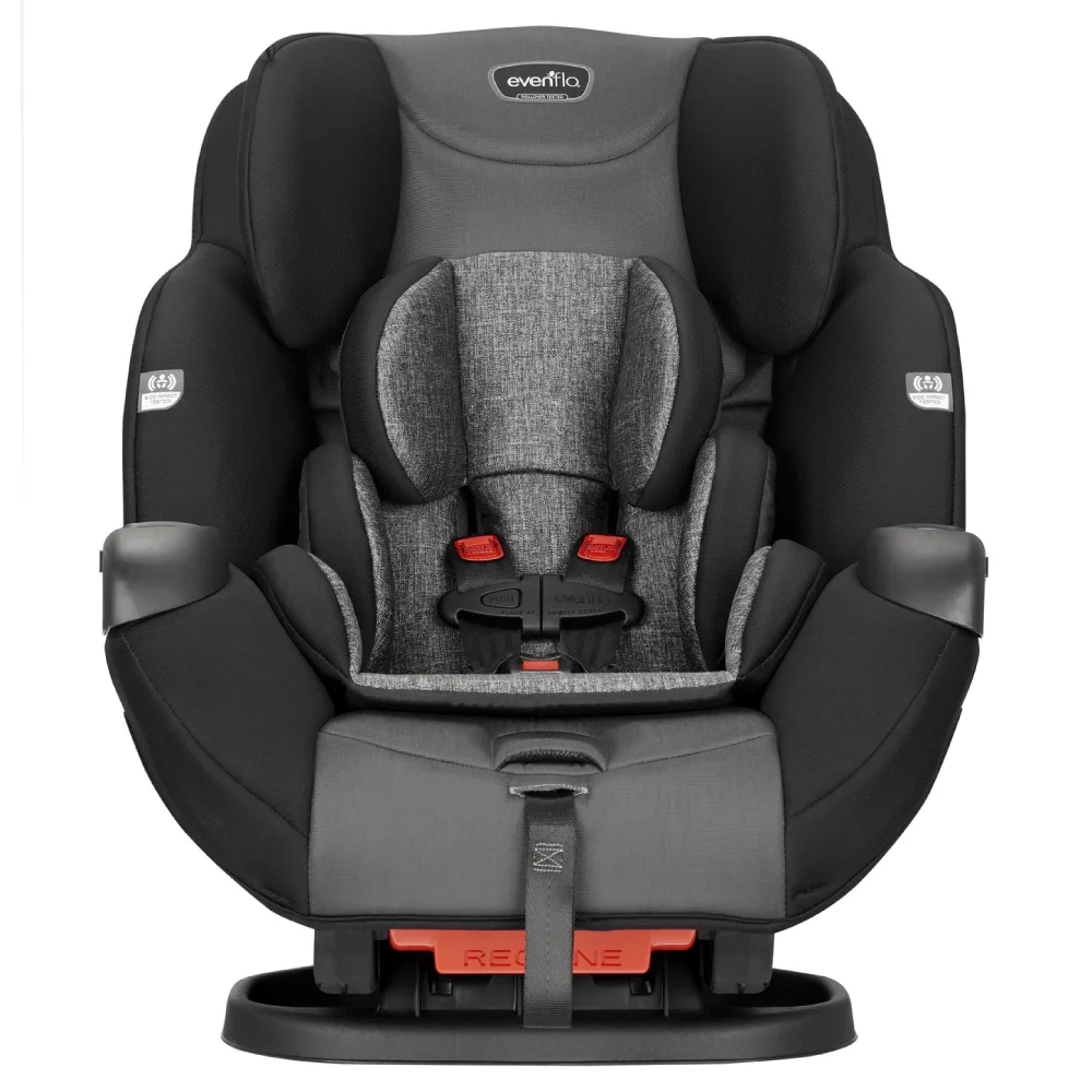 The Evenflo Symphony Elite (also known as Symphony Sport) is a highly rated all-in-one convertible car seat built to take your child from newborn (2.3kg) to booster age (up to 49.8kg). Designed for convenience and safety, it features the SureLATCH® system, which automatically tightens to secure the seat in seconds—no seatbelt wrestling required.