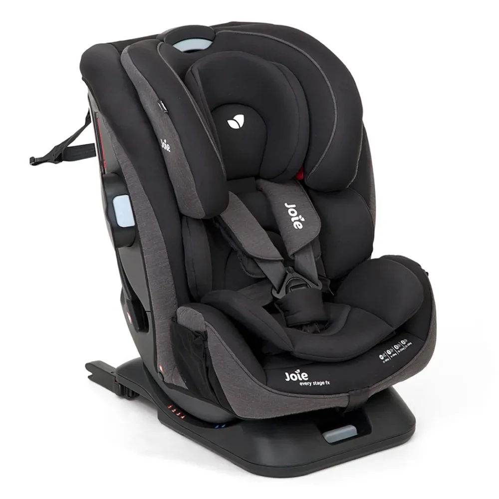 The Joie Every Stage FX is a smart, long-term investment in your child’s safety and comfort. It’s designed to grow with them from birth up to 12 years (Group 0+/1/2/3). This 4-in-1 car seat begins as rear-facing for infants, then transitions to forward-facing and eventually to a high-back booster.
